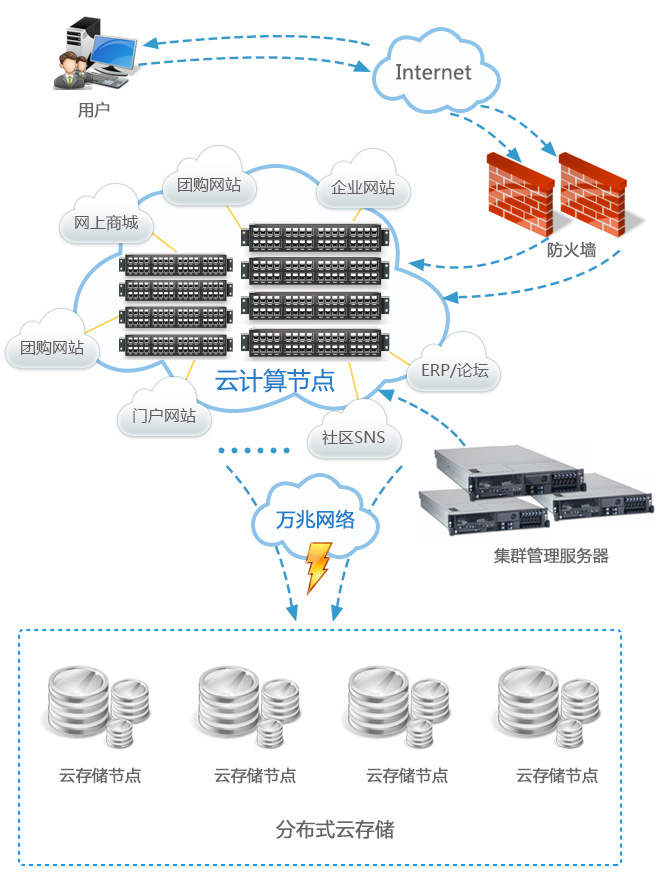 超过1000台服务器的资源池,完美支持热迁移,系统可靠性达99.95%以上.